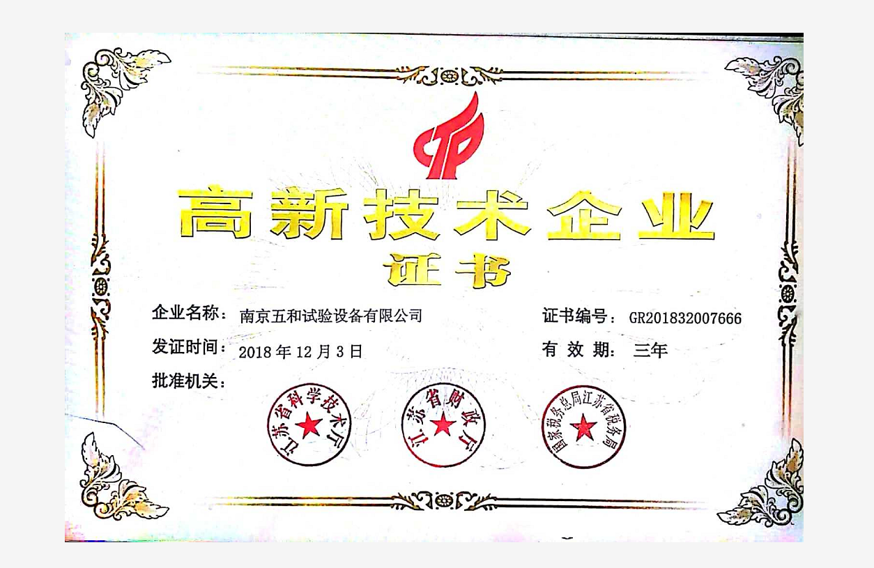 2018高新技術(shù)企業(yè)證書